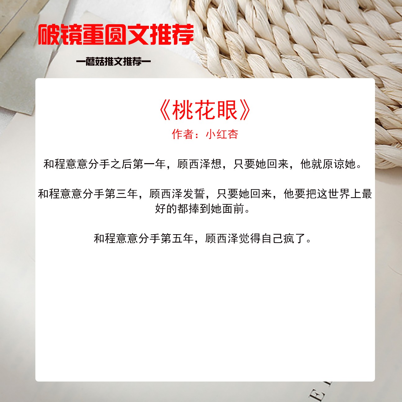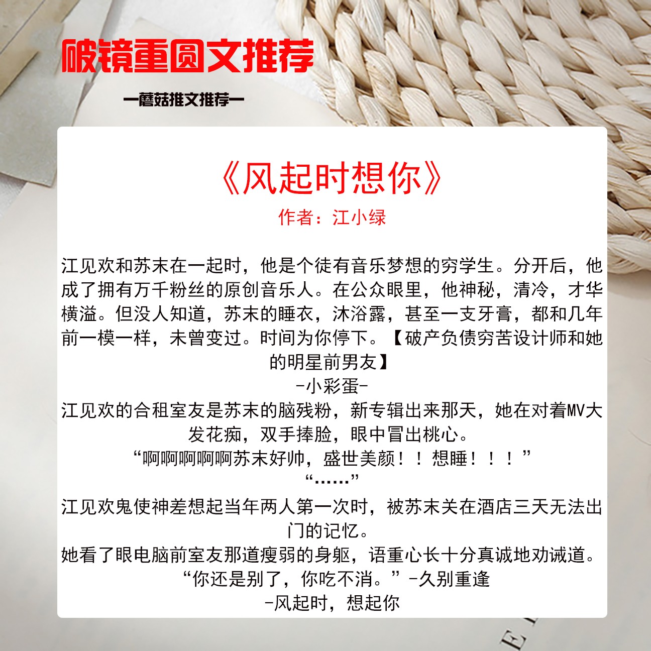 重点:破镜重圆文,男主歌手,女主服装设计师,大学时候谈了恋爱,后来由于女主家里破产,女主打电话找男主男主在创作几天没接到电话发现后去找女主看到女主男二抱一起就很生气的说分手,女主失魂落魄被男二家安排出国,多年后久别重逢,男主还是难以忘记女主,开始慢慢追妻路,是甜文,后期两个人在一起那叫一个腻歪呀,男主一个大明星天天围着女主转,还给她买早饭,做饭,蛮甜的。