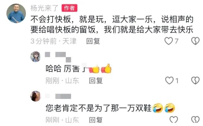 而在前不久,网络上爆出的“李宽买鞋”事件,也引起了广泛关注。这次快板表演似乎是在对这一事件作出积极回应。网友们纷纷猜测,这是否是杨议为了推广传统文化而进行的行动。无论目的如何,不可否认的是,这种形式确实在某种程度上引起了更多人对传统文化的关注。