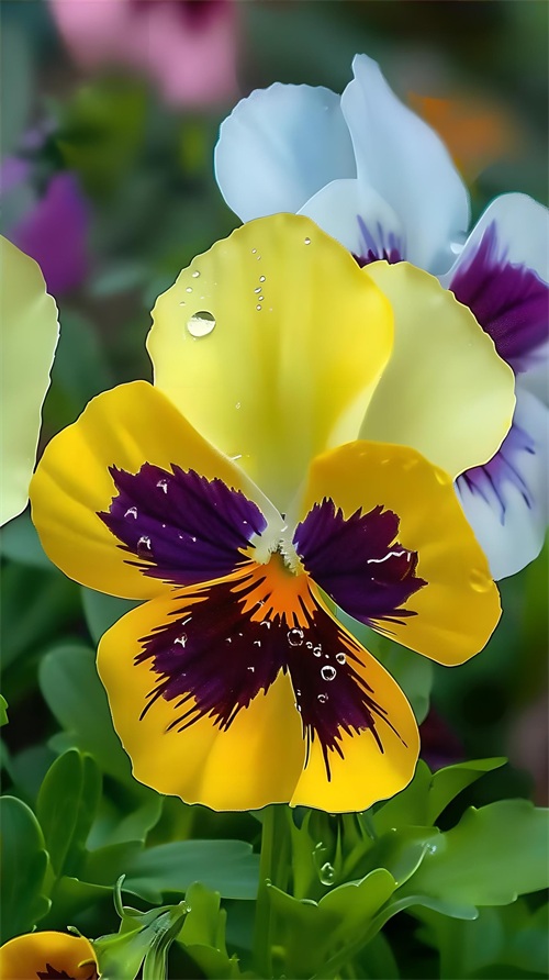 三色堇,路边绿化带里很常见的小花,花虽小,可色彩艳丽,花型奇特,非常招人喜爱。三色堇的花语是白日梦、思慕、沉思。古希腊神话里,爱情丘比特误射了白色的堇菜花,使得它的花瓣上留下了血泪的痕迹,于是成就了它美丽的色彩。