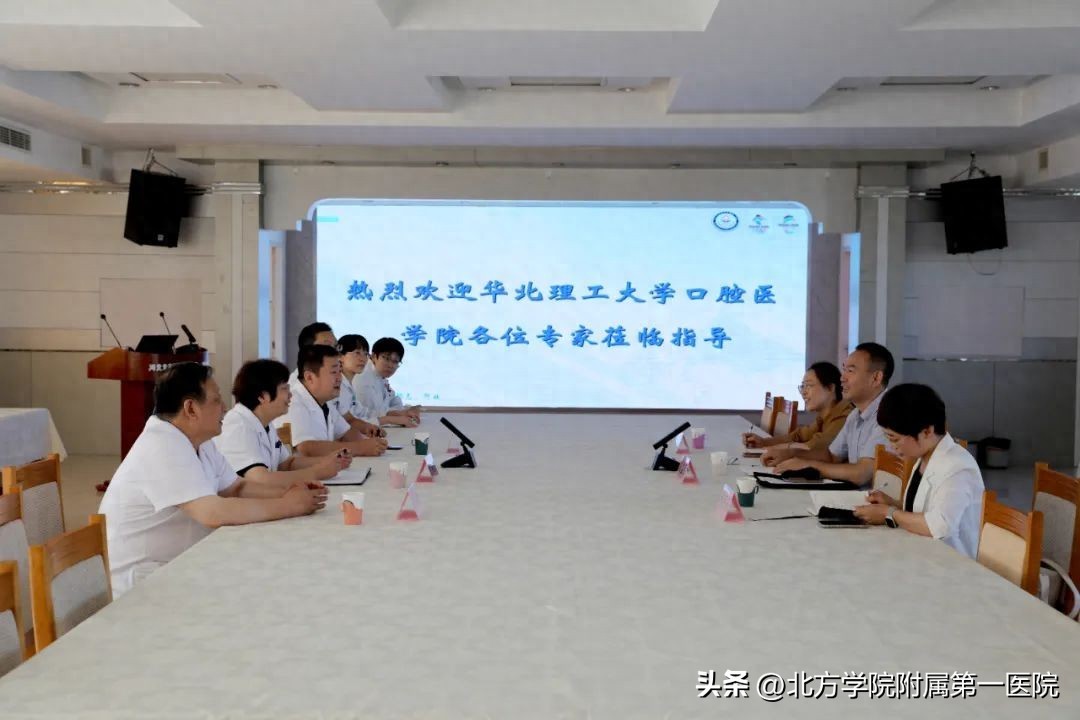 为了规范研究生培养环节,保障研究生培养工作的顺利开展,增进双方了解,促进医教协同发展,华北理工大学口腔医学院院长戚孟春、党委副书记兼副院长王娟、研究生培养办主任冯丽芳一行三人于2023年8月18日到我院调研交流。双方就口腔专硕研究生规培轮转安排、专业培养方案及相关考核等事宜召开座谈会,我院副院长费建东、住培办主任徐国刚、口腔科安峰教授、副主任马赛等人参加座谈。