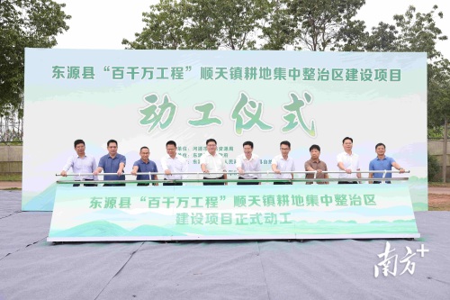 5月17日,东源县“百千万工程”顺天镇耕地集中整治区建设项目动工仪式在顺天镇沙溪村举行,集中整治7979亩现有利用土地,向有限的资源禀赋要大田、要良田、要新田。