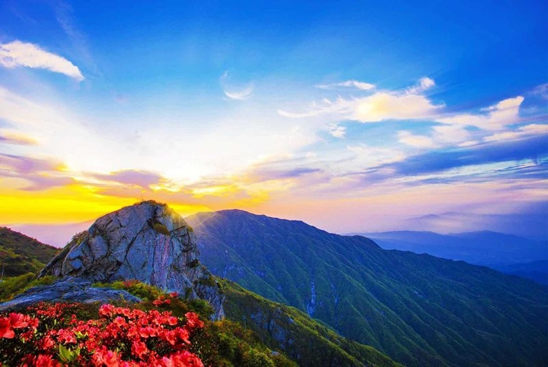 黄龙山景区位于咸宁市通城县,处于湘鄂赣三省交界处,主峰只角楼海拔1528.3米,既是佛教黄龙宗的发源地,又是道教的第二十五洞天。登临黄龙山,流泉飞瀑宛如白练,云海林涛仿若仙境,山上奇花异草,珍禽稀兽不可胜数,是国家AAA级旅游景区。