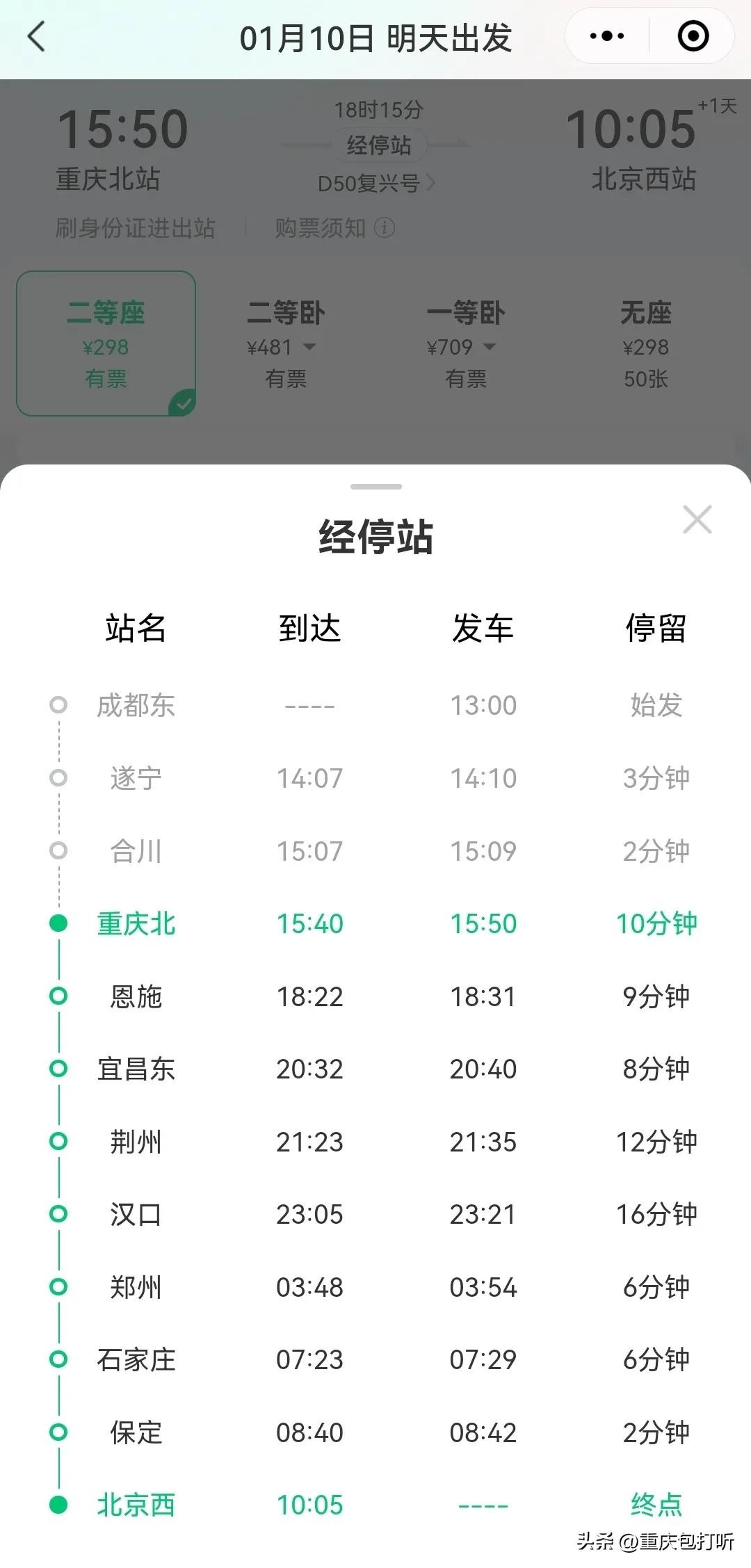 重庆直达北京新增动车组,原来动车也可以跑通宵