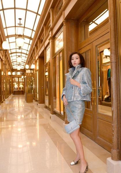 香槟色与暗金色组合,绝对是完美CP。加身银色套裙,金银色系展现高贵气质,足以衬托香奈儿迷之自信。