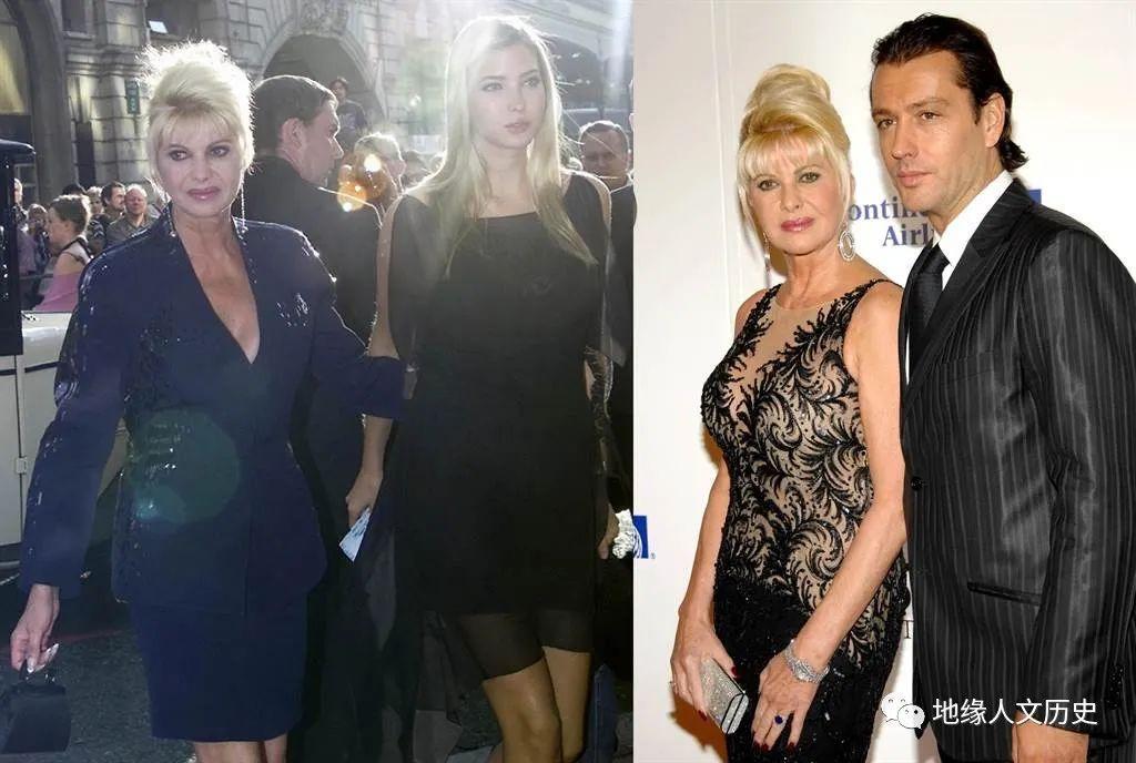 (左)伊凡娜的美貌毫不保留地遗传给女儿伊凡卡,图为母女俩2002年在伦敦出席音乐剧首演的数据照。(图/网络)(右)伊凡娜2008年与1972年出生的意大利男模鲁比康狄(Rossano Rubicondi)结婚,但不到一年就离婚了。尽管他们分道扬镳,但经常有人看到俩人出双入对。图为伊凡娜与鲁比康狄2007年在纽约出席癌症研究慈善舞会的数据照。(图/网络)