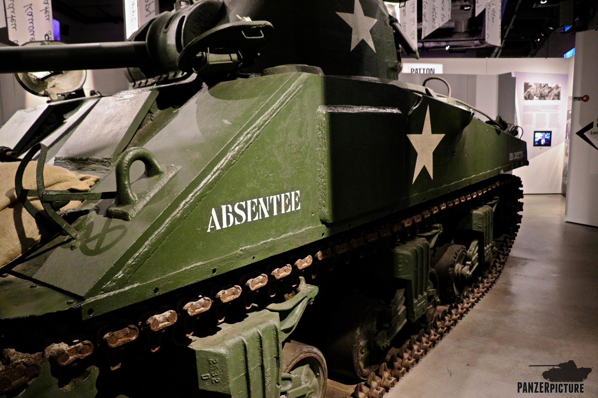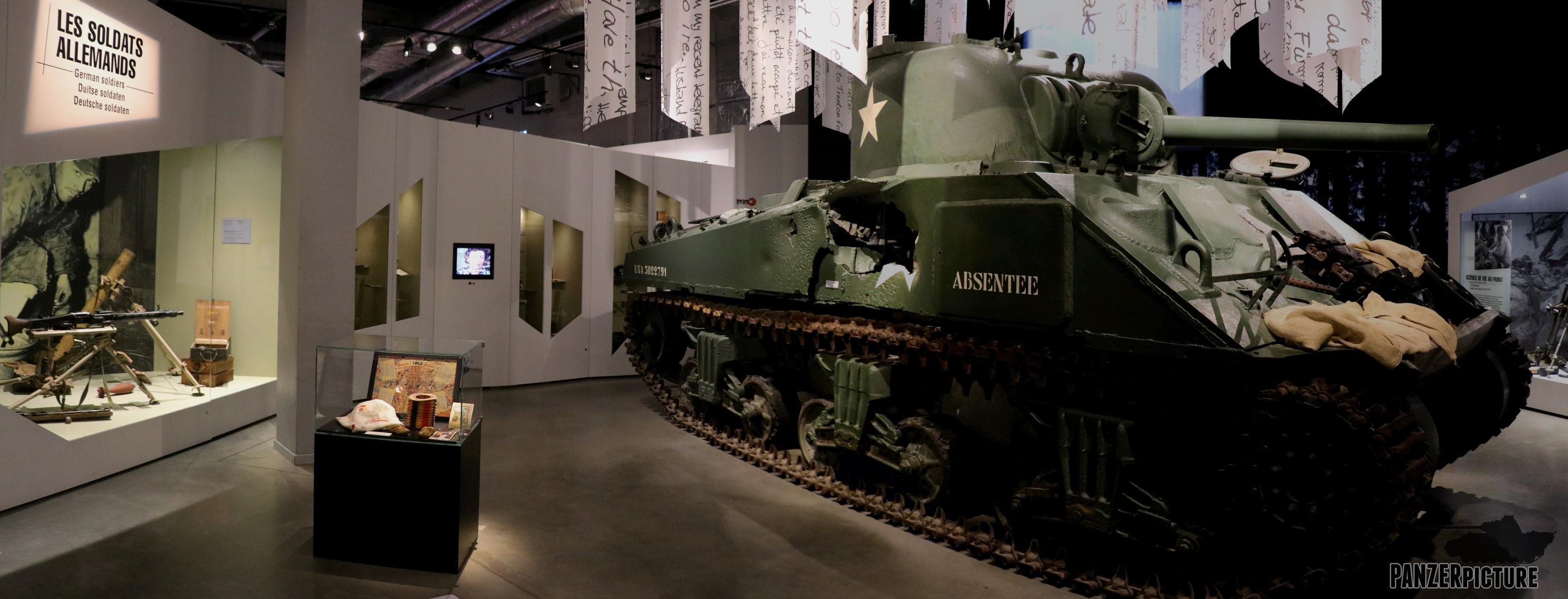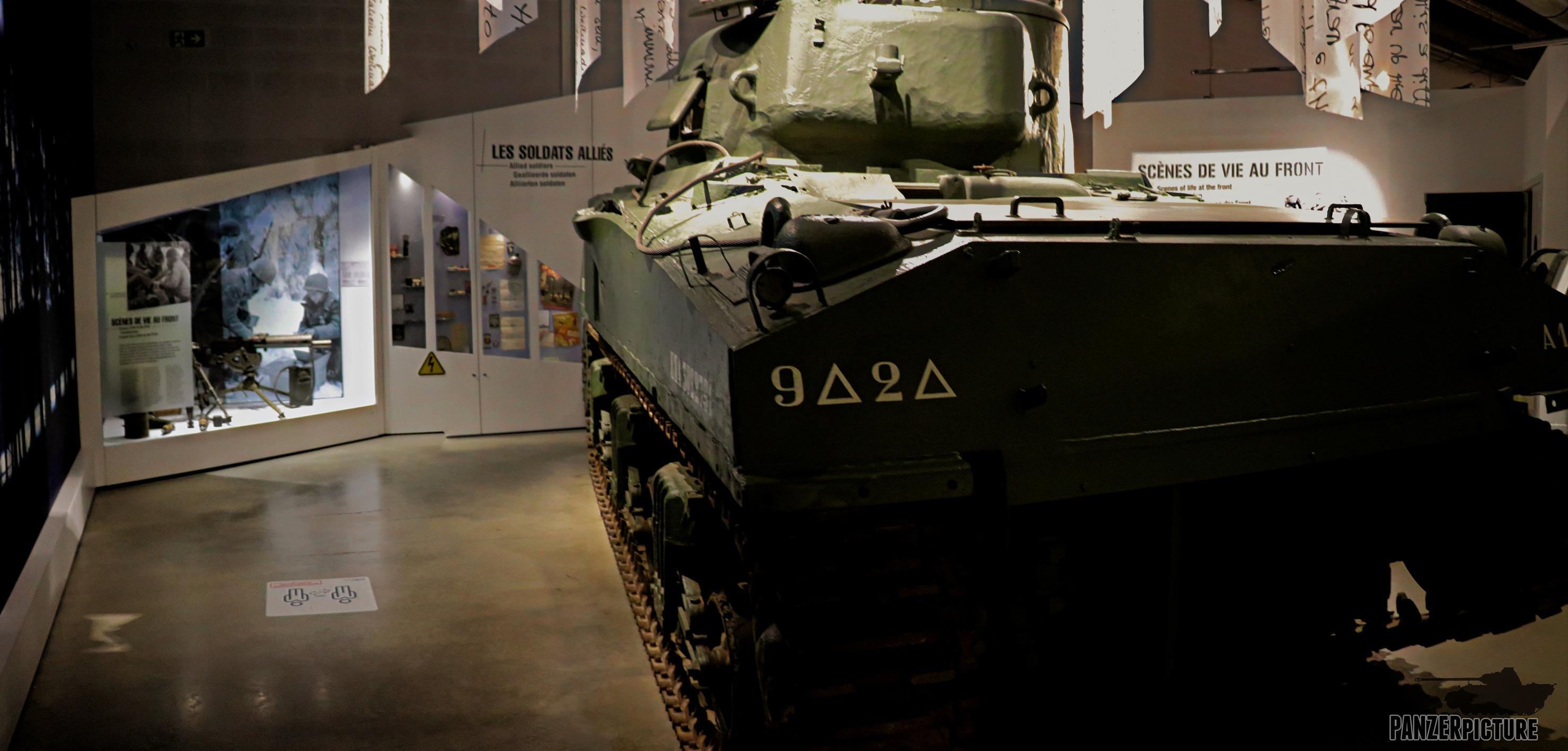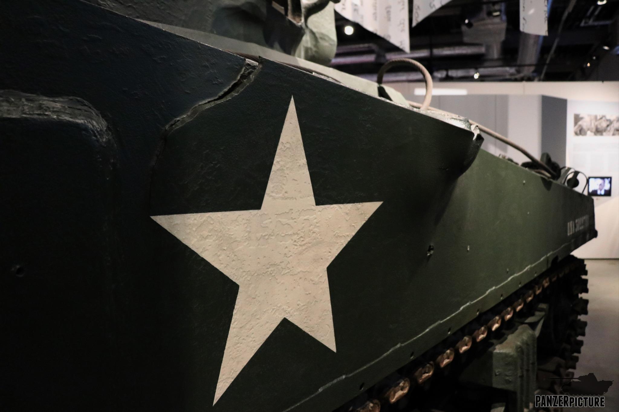 这个M4谢尔曼被误导表示为二战车辆。这辆车实际上是一辆战后坦克,车体来自比利时用作靶场目标,你看到的受损都是在靶场上完成的。