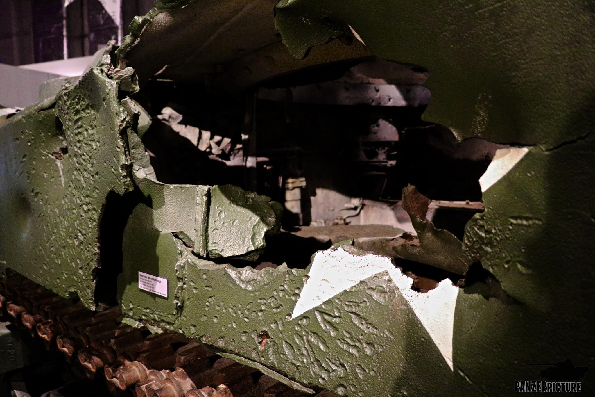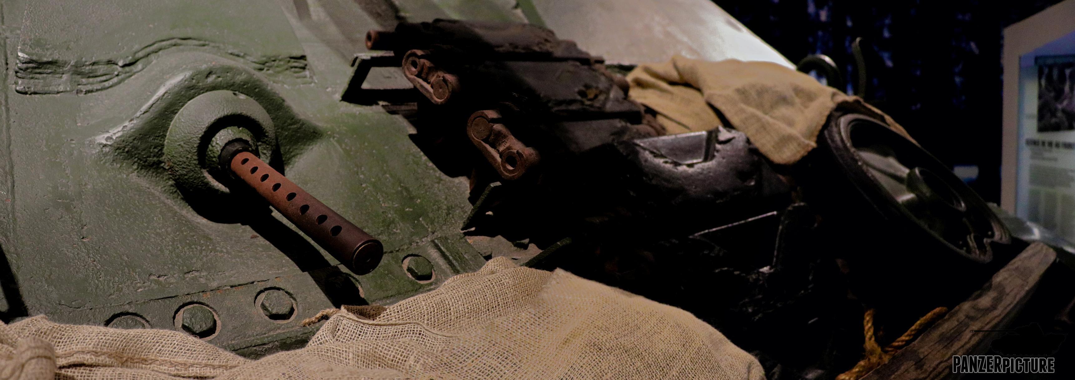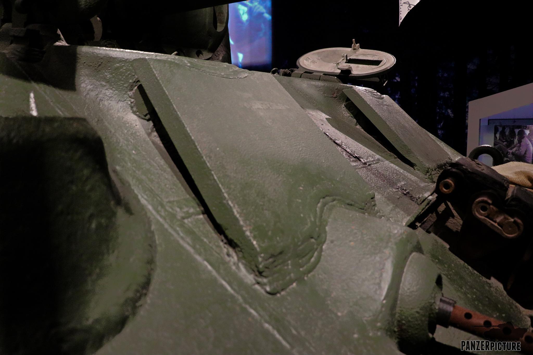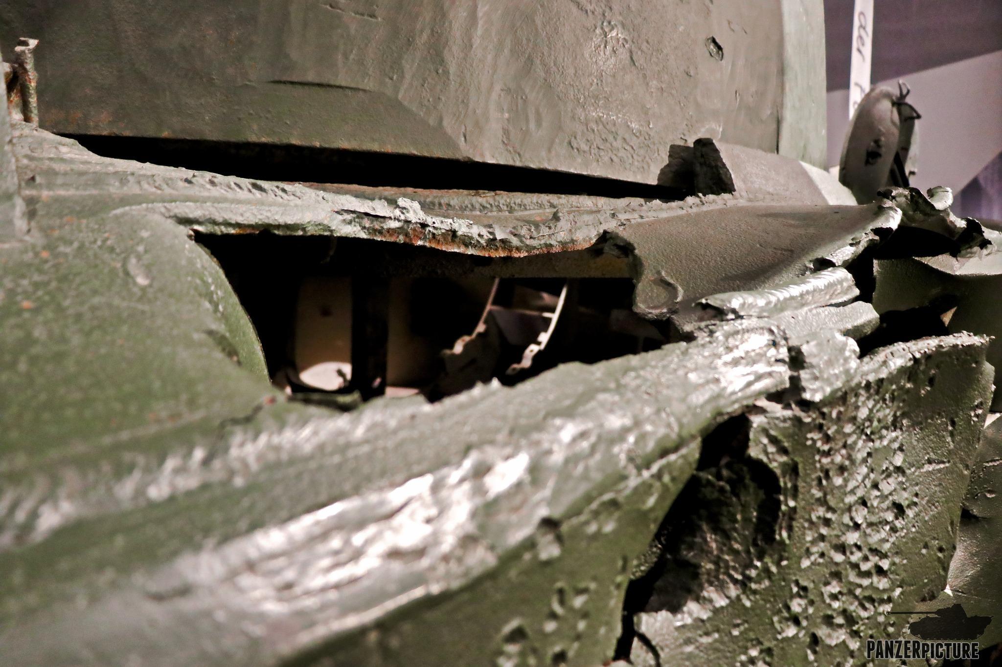 这个M4谢尔曼被误导表示为二战车辆。这辆车实际上是一辆战后坦克,车体来自比利时用作靶场目标,你看到的受损都是在靶场上完成的。