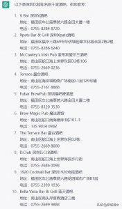 - ChatGPT评深圳十大酒吧 ChatGPT眼中的深圳十大酒吧,列表直接给出来了,但是在大众点评上一搜,好像很多都不存在或者已经歇业了。看来ChatGPT用来替代大众点评还差点意思。 以下是深...